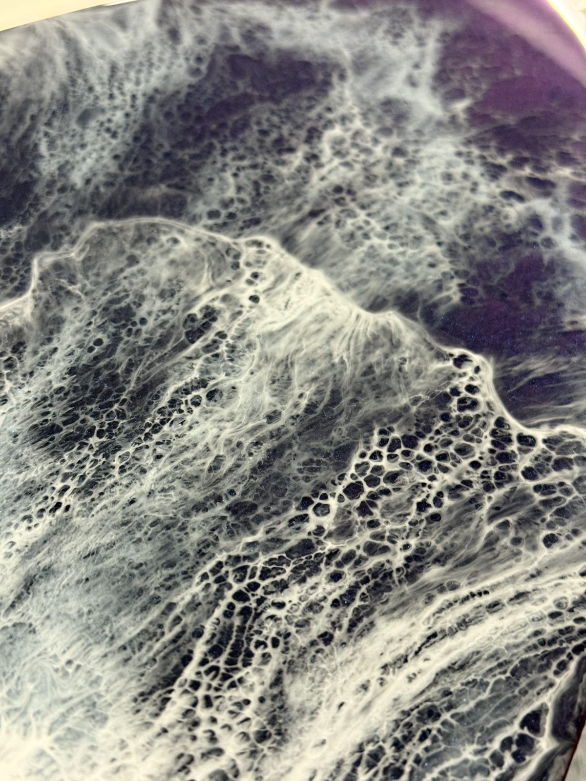 Photos highlight resin waves and custom engraved name. All boards are made to order and each wave is different and unique.
